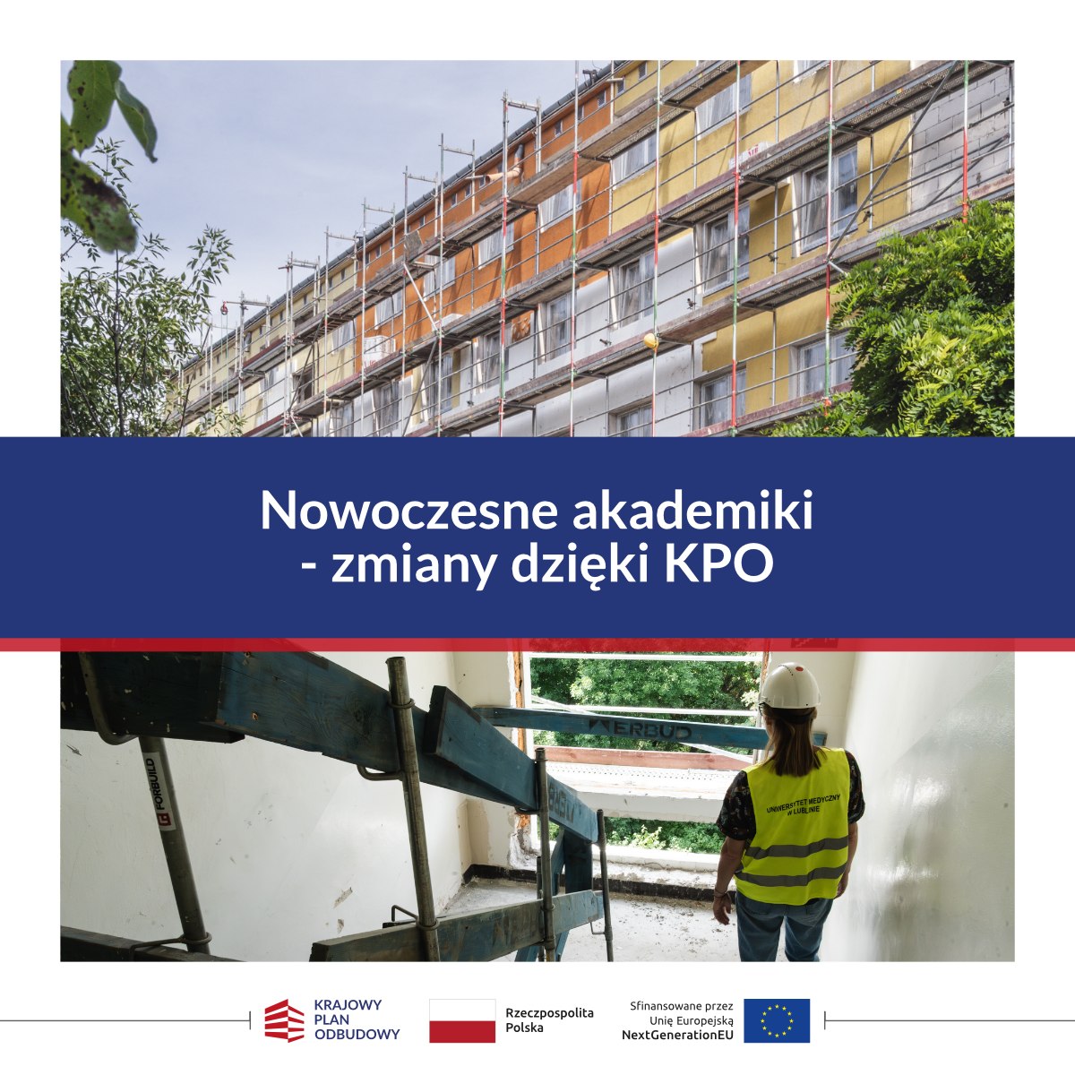 Z przyjemnością informujemy o inwestycjach, które podejmujemy, aby naszym studentom i studentkom żyło się lepiej i nowocześniej! Od stycznia 2025 roku Uniwersytet Medyczny w Lublinie realizuje z ERBUD International Sp. z o.o. umowę na kompleksową modernizację Domu Studenta nr 2 i Domu Studenta nr 4.